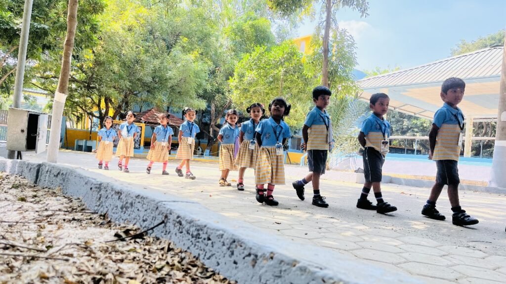 The emphasis in these L.K.G and U.K.G is laid on all round development – physical, emotional, intellectual and social. Elements of English and Mathematics, Games, Singing, Storytelling, Rhymes and Creative work. Additional programme are introduced to make new subjects interesting and easy to learn attention is given to learn and attention is given to make the children independent.